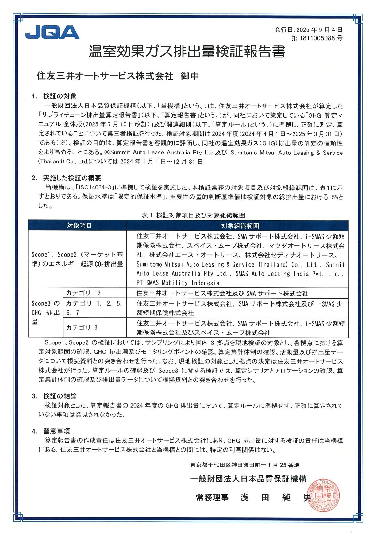 To enhance the reliability of its GHG emissions data, the Company undergoes third-party verification. For FY2024, SMAS obtained limited assurance covering Scope 1 and 2, as well as Scope 3 Categories 1, 2, 3, 5, 6, 7, and 13.