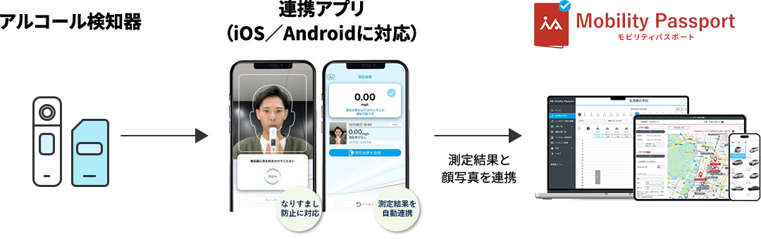 一部の検知器とBluetooth連携が可能です。連携することで、アルコール検知器で測定した結果をMobility Passportへ自動保存でき、記録漏れや虚偽報告を防ぎ、確実な運用が実現可能です。